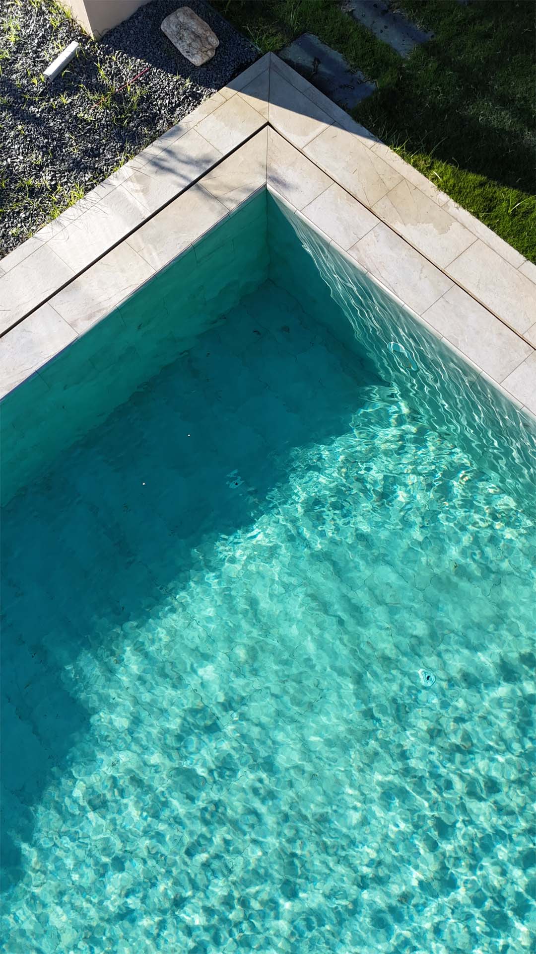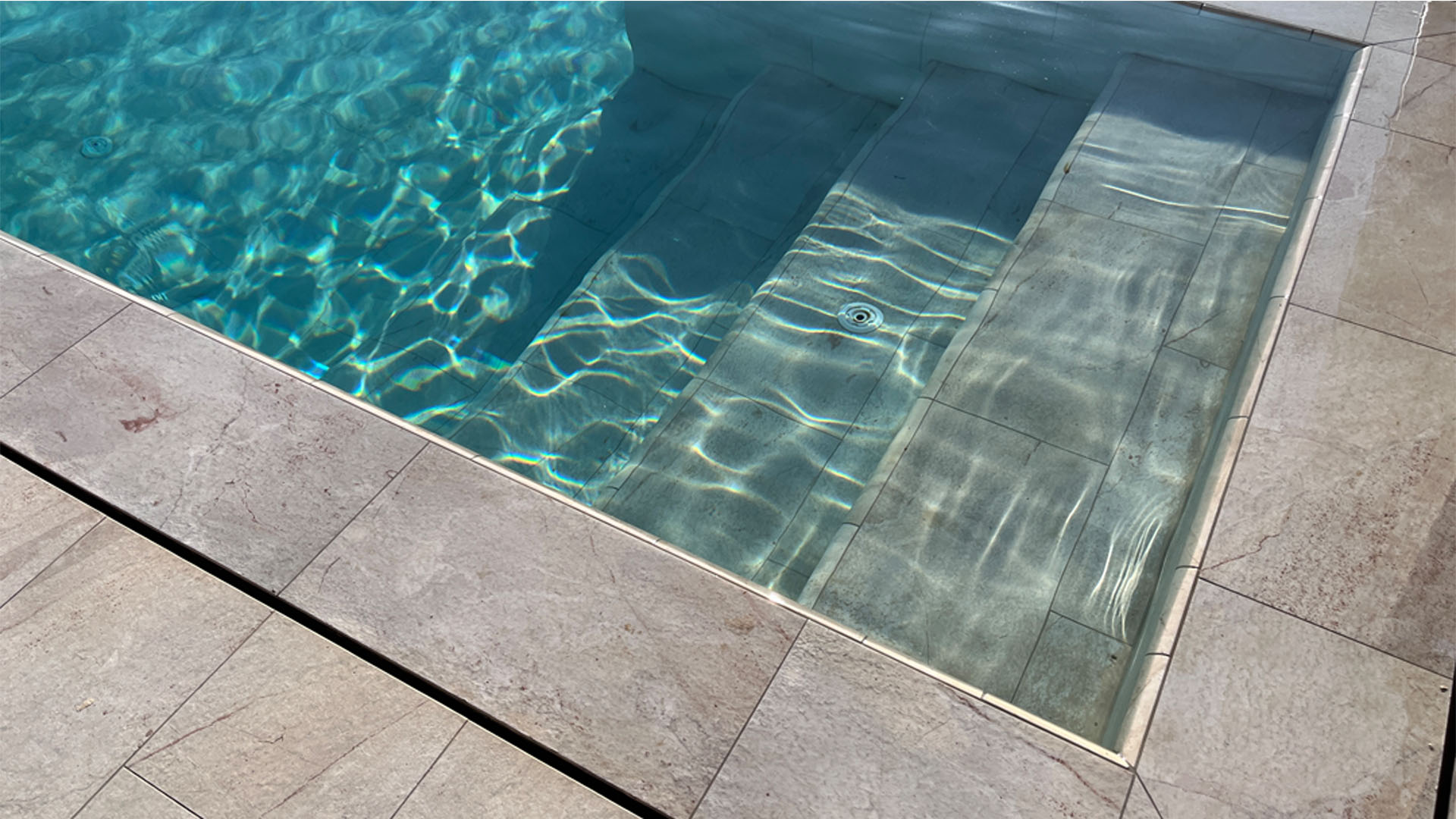 İzmir Menderes’te tamamladığımız 12 x 6 metre ölçülerindeki bu özel havuz projesi, hem mimari uyum hem de yüksek teknik standartlar ön planda tutularak tasarlandı. Projenin ilk aşamasından son teslimine kadar tüm süreç, Egeli Havuz’un deneyimli ekibi tarafından titizlikle yönetildi. Havuzun görsel bütünlüğünü sağlamak için Serapool’un Beige Stone porselen kaplaması tercih edildi. Doğal taş dokusunu modern çizgilerle birleştiren bu kaplama, hem su altında hem de çevrede oldukça sıcak ve zarif bir atmosfer oluşturdu. Havuzun kenar ve dönüş detaylarında ise yine Serapool’un Beige Stone dış bükey bordürleri kullanılarak hem şık bir geçiş sağlandı hem de uzun yıllar dayanıklılık sunan profesyonel bir bitiş elde edildi.
