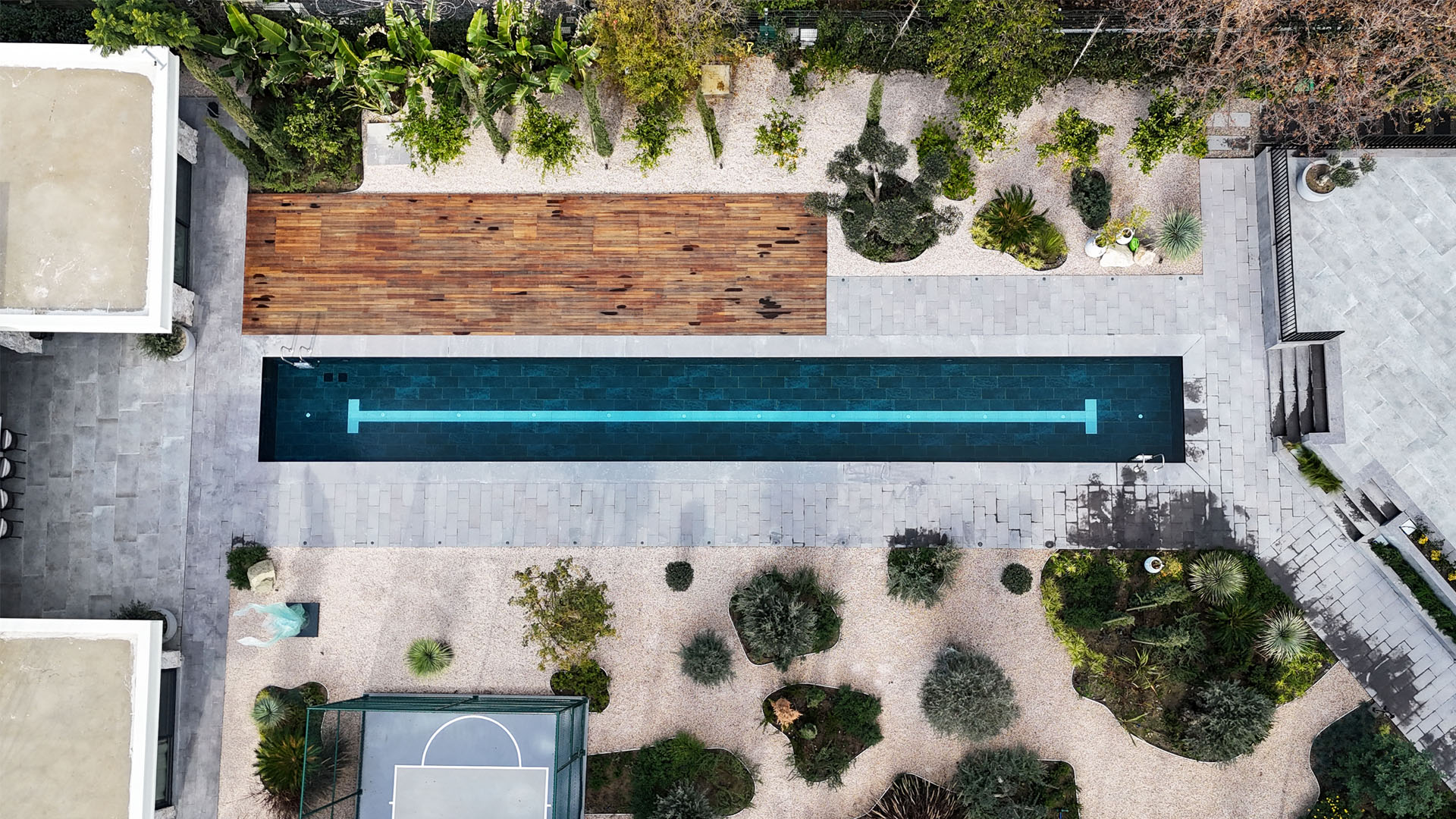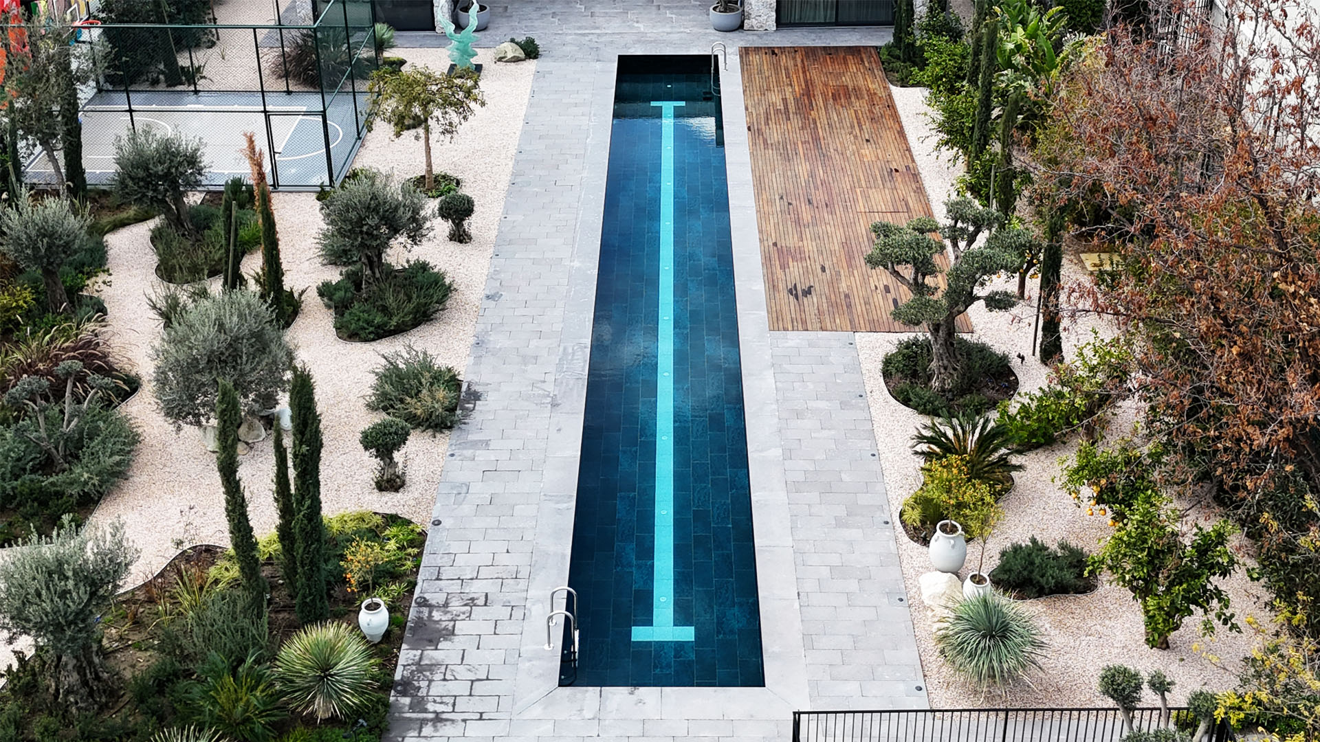 25 metre uzunluğunda ve 4 metre genişliğindeki havuz, hem yüzme antrenmanları hem de günlük kullanım için ideal ölçülerde hayata geçirilmiştir. Havuz iç kaplamasında, dayanıklılığı ve estetik görünümüyle öne çıkan Serapool Verde Guatemala porselen karo tercih edilmiştir.